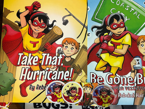 This 32 page, full-color paperback book is a silly sequel to "Take that, Hurricane!" Love bugs have taken over Coastal City, and Super Tess is on the job!